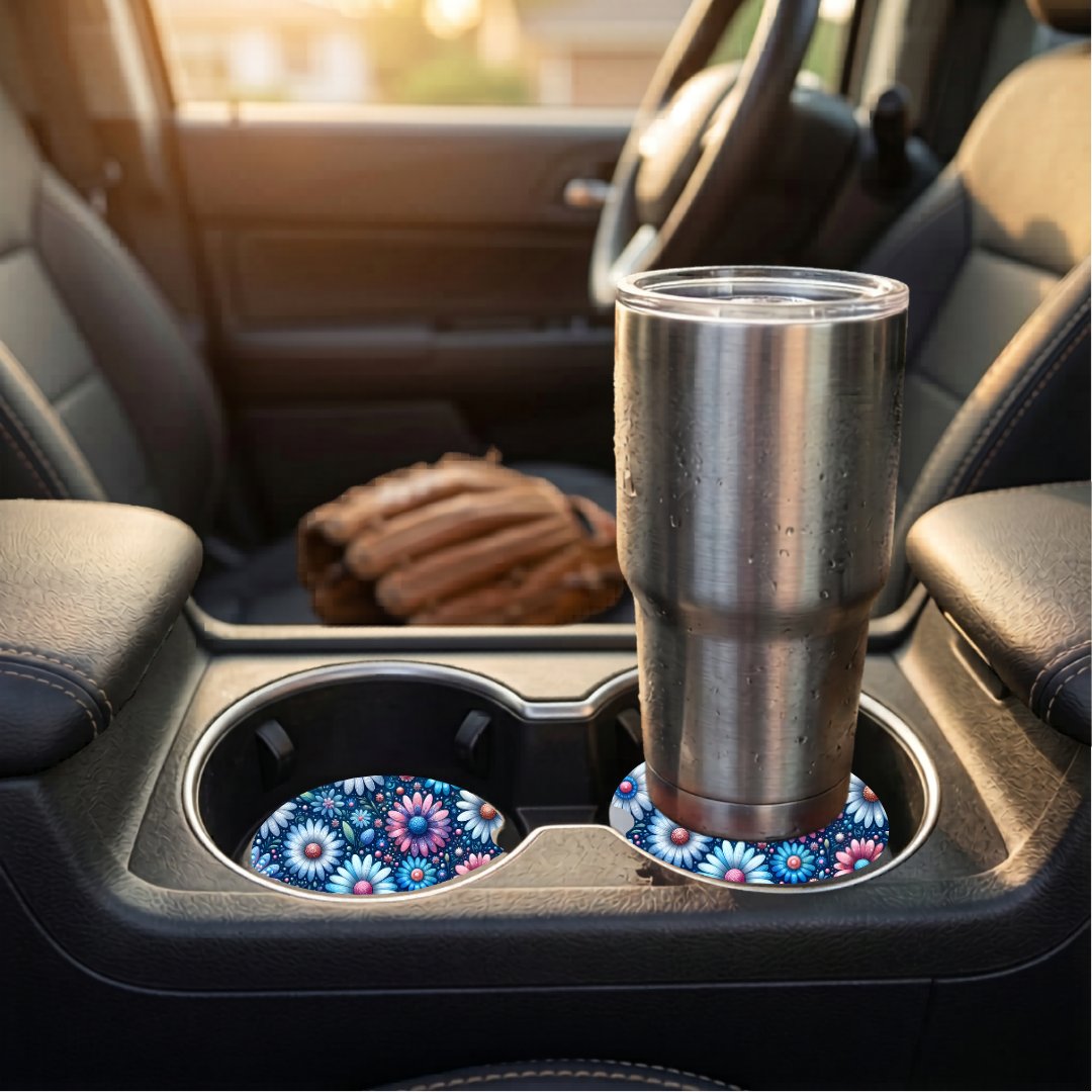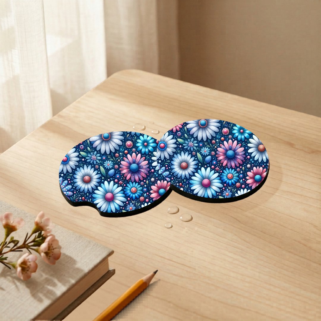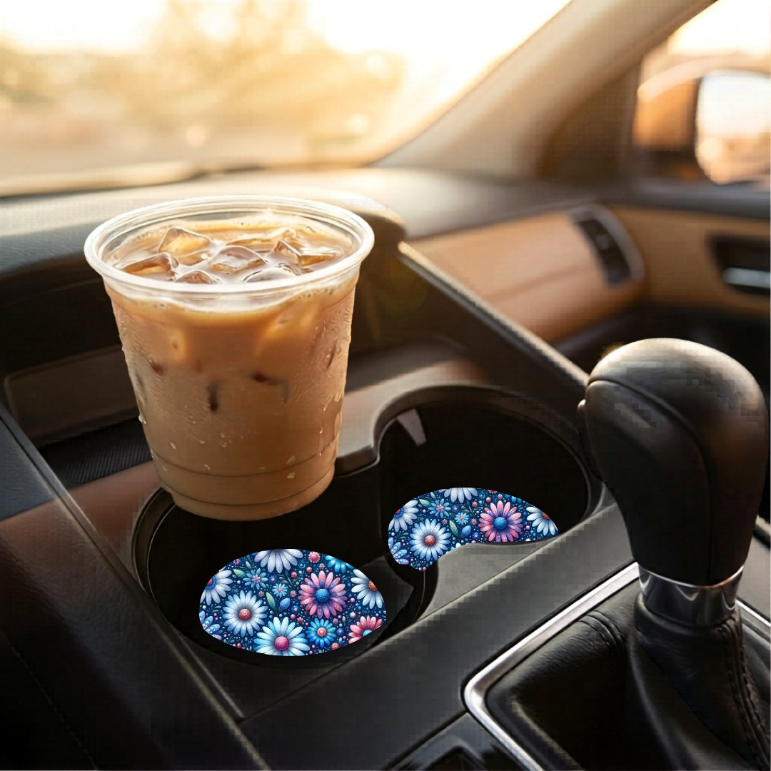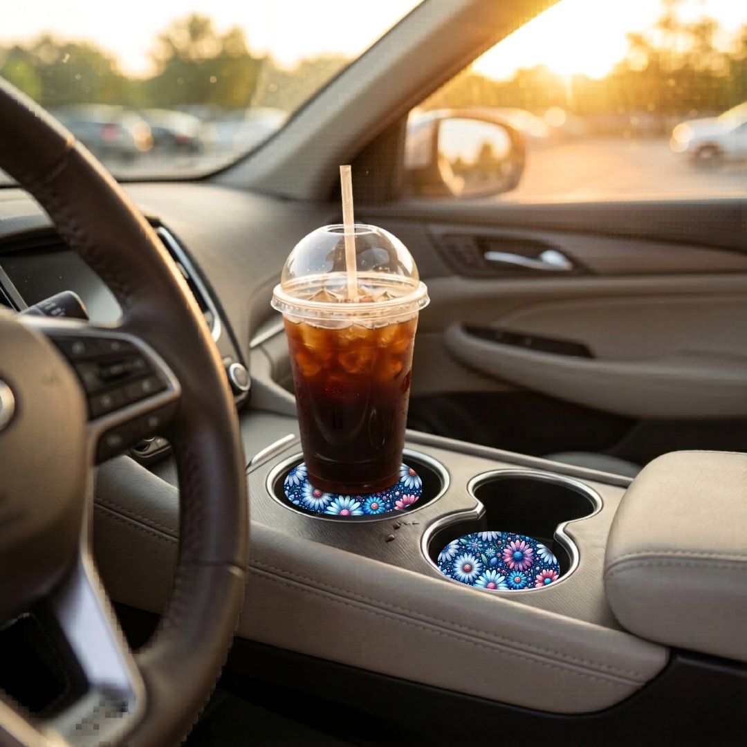 Includes: 2 matching car coasters.