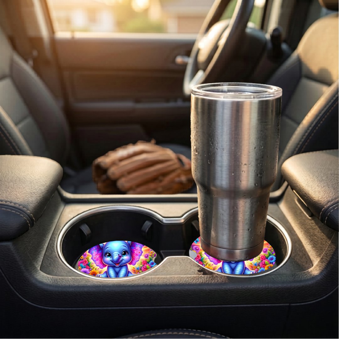 Care: Remove, rinse or wipe clean, and air dry before placing back in your car. Made of Neoprene and each coaster is 2.75".