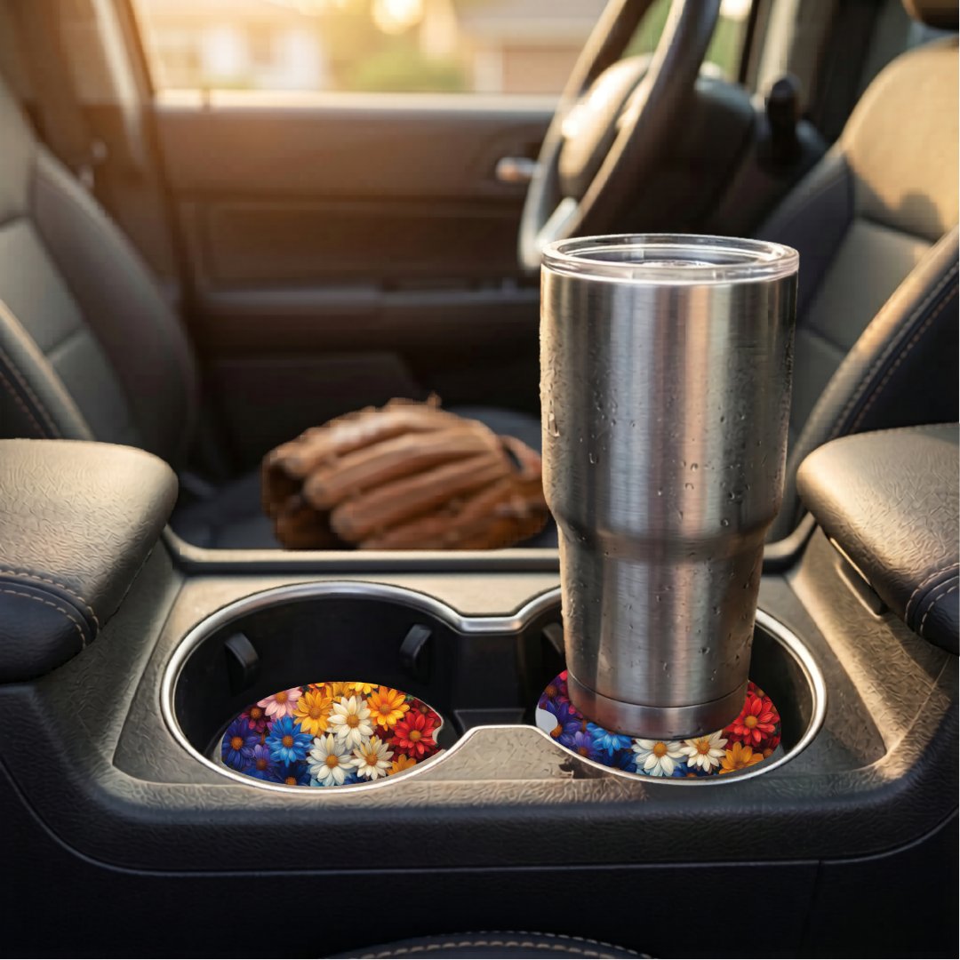 Car Coaster - Rainbow Flowers